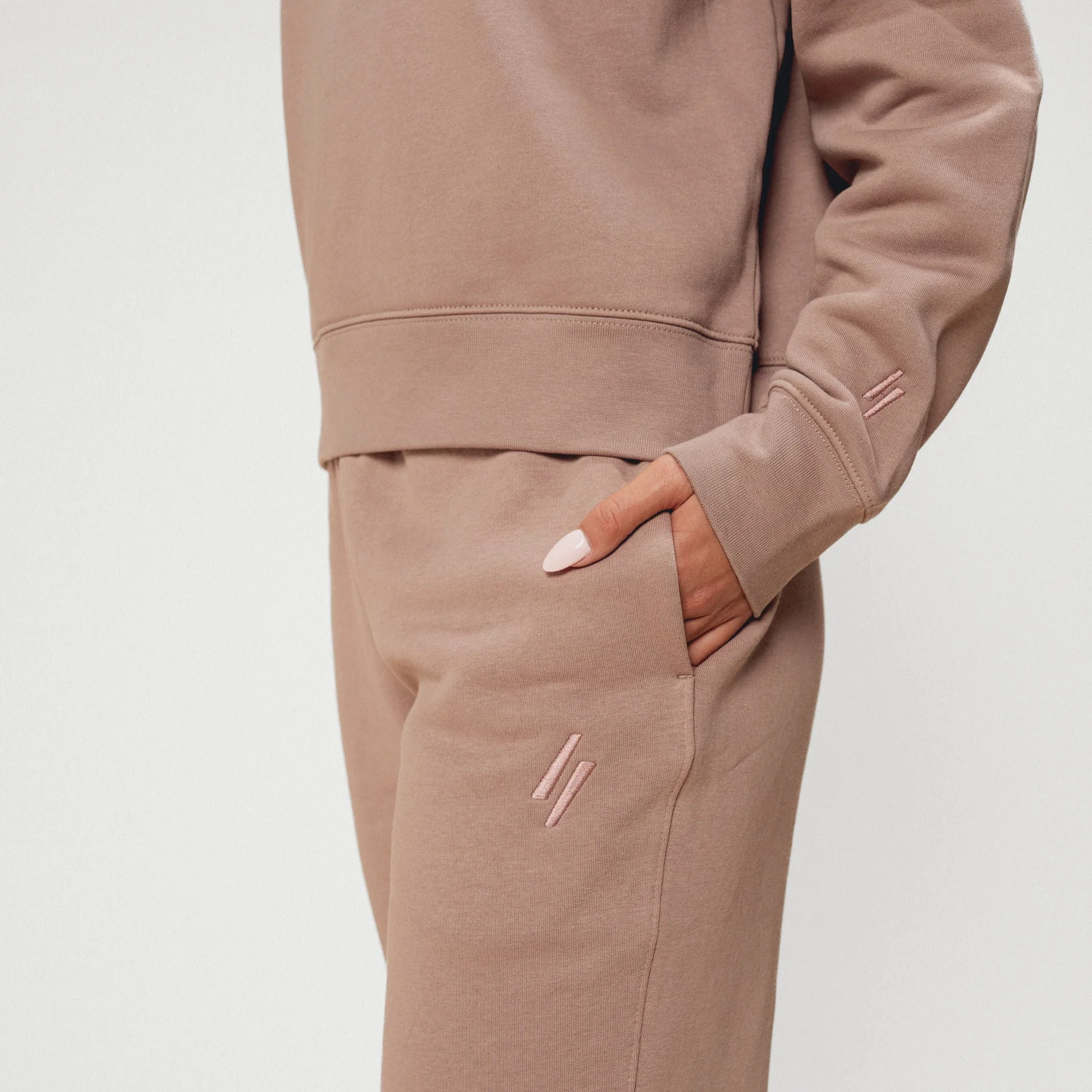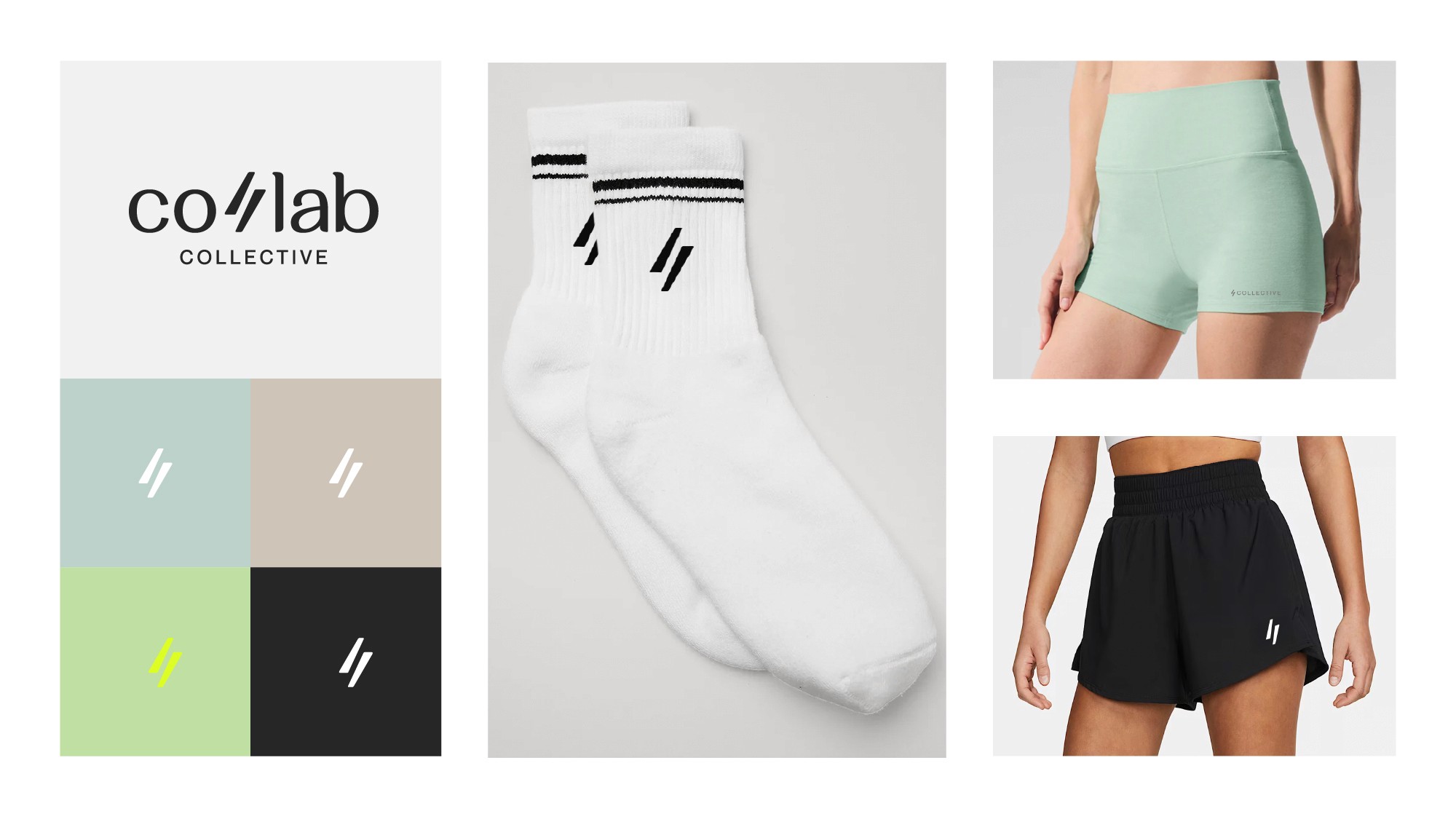 The identity centers around the double-slash. It became a simple way to represent movement and collaboration, and carried across everything from branding to trims to garment details. Worked with my team to develop the first line of women’s athleisure. The focus was getting the balance right, fit, function, and something that felt a bit more elevated than typical activewear.